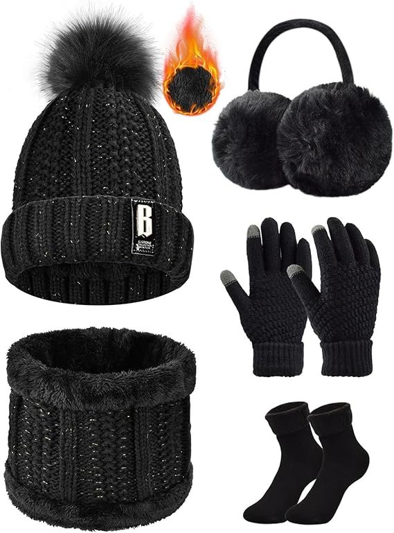 Yuson Girl Conjunto de gorro y bufanda de punto, forro polar de invierno, forro de lana Beanie Hat, calentadores de cuello para mujeres
